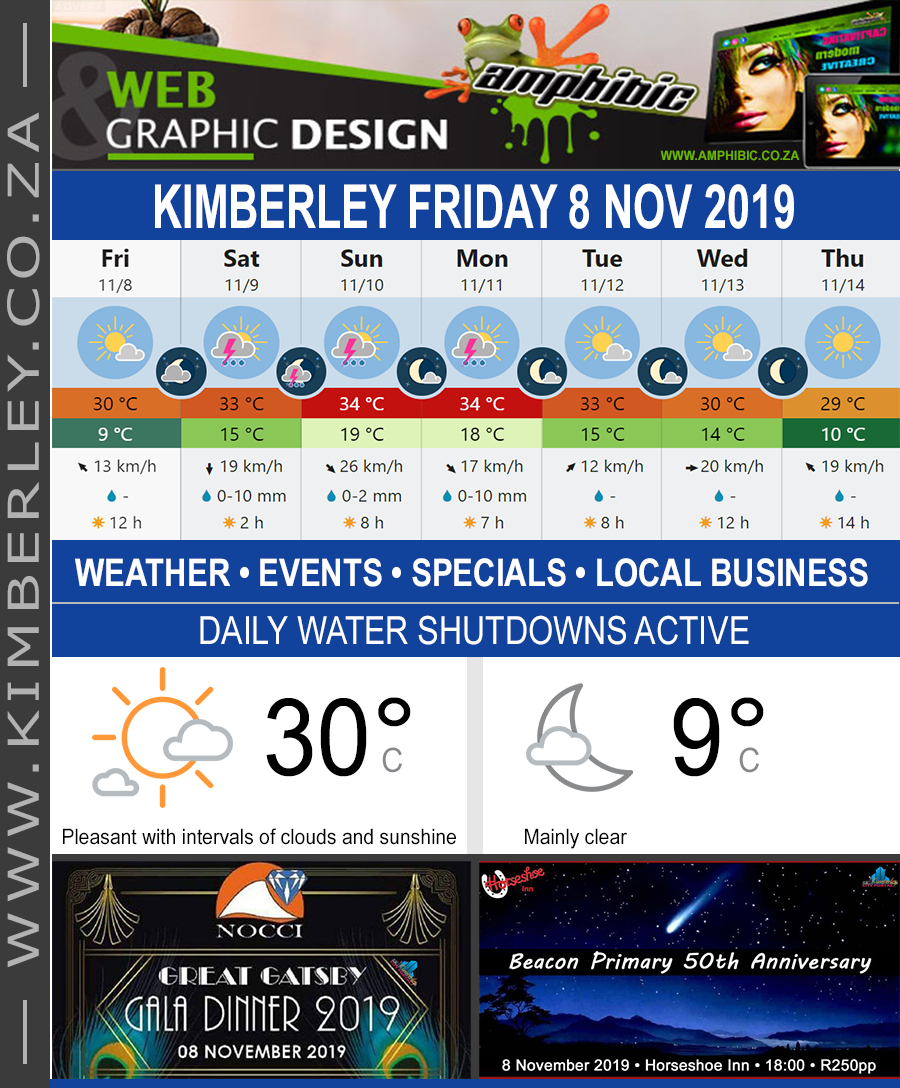 #Kimberley #CityPortal #KCP #KimberleyEvents #KimberleyBusiness #KimberleySpecials #KimberleyPromotions #KimberleyLocalBusiness #KimberleyWeather #KimberleyNightSky #KimberleyHistory #WhatDayIsToday
