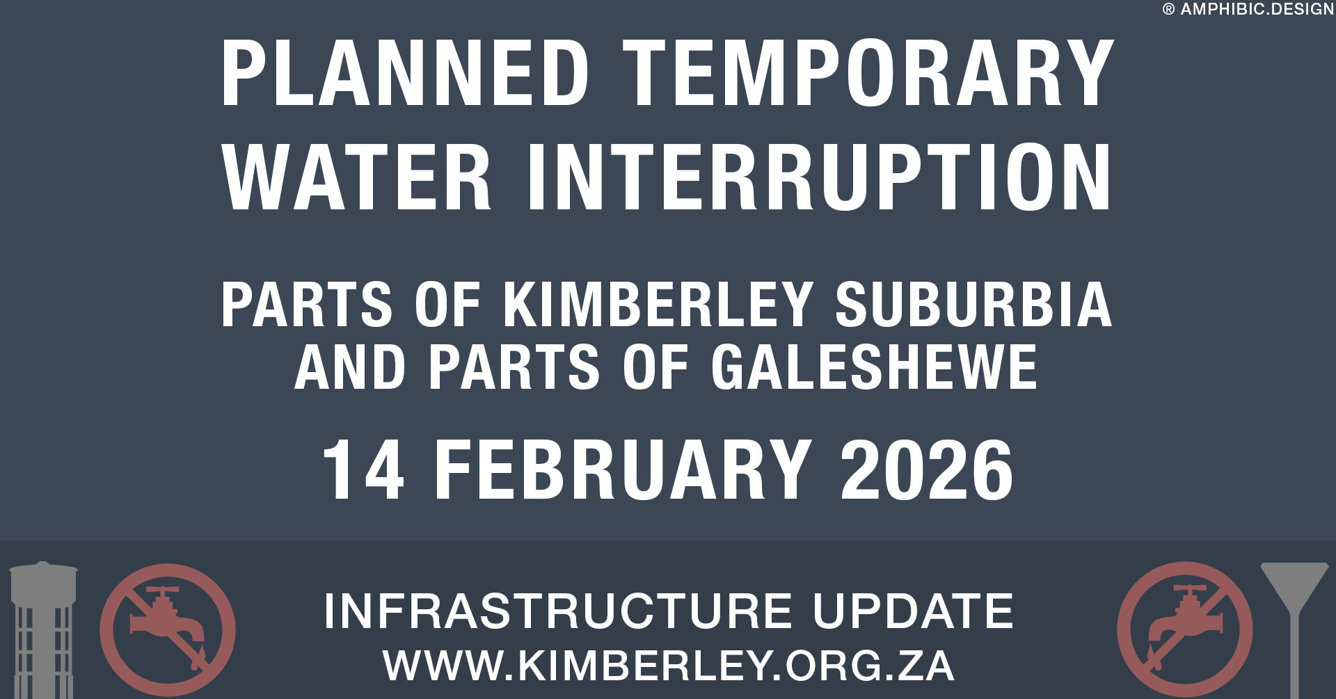 TEMPORARY WATER INTERRUPTION – 14 February 2026 – Parts of Kimberley Suburbia & Parts of Galeshewe
