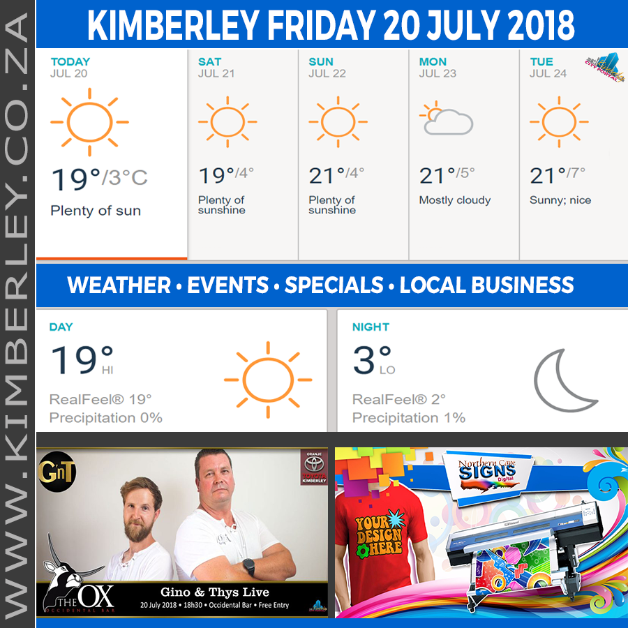 🗓#KimberleyToday, Friday 20/07/2018
