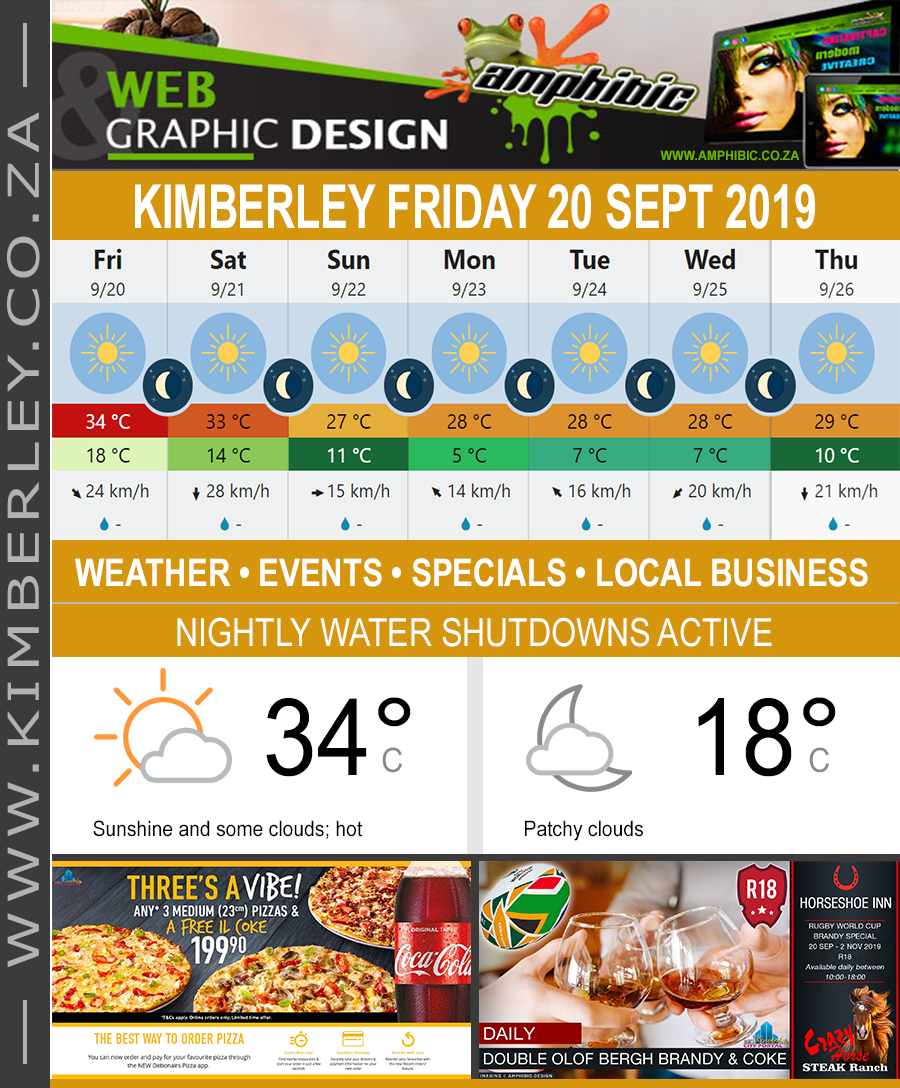 #Kimberley #CityPortal #KCP #KimberleyEvents #KimberleyBusiness #KimberleySpecials #KimberleyPromotions #KimberleyLocalBusiness #KimberleyWeather #KimberleyNightSky #KimberleyHistory #WhatDayIsToday