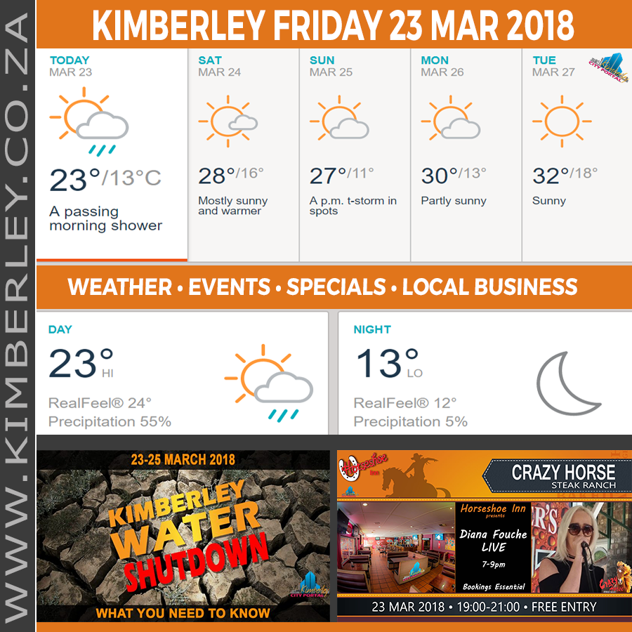 💦 TOTAL WATER SHUTDOWN IN KIMBERLEY • 23-25 MARCH 2018