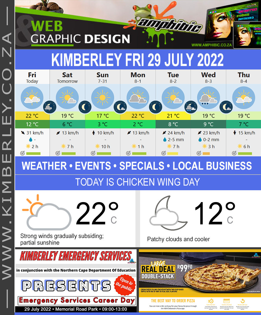29 JUL – Emergency Services Career Day @ Memorial Road Park: https://www.kimberley.co.za/?p=39219