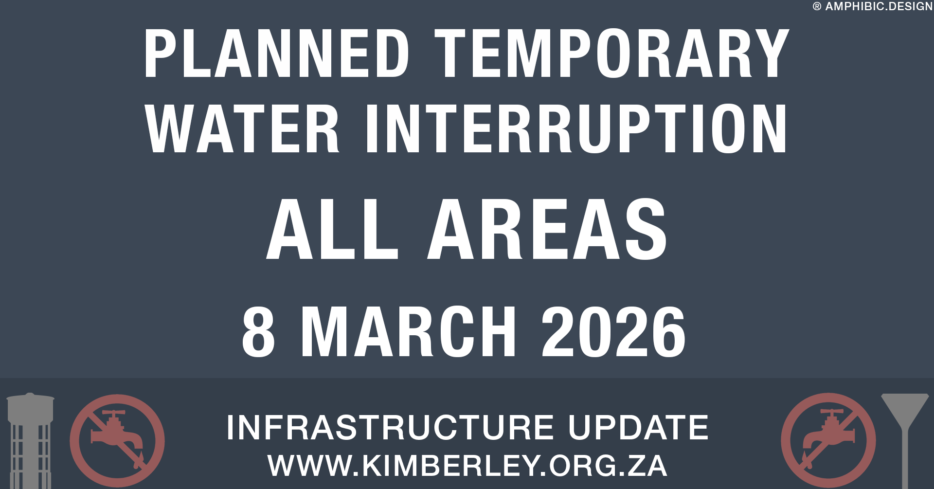 ⚠️URGENT NOTICE: PLANNED WATER SUPPLY INTERRUPTION FOR THE ENTIRE KIMBERLEY ON SUNDAY, 08 MARCH 2026