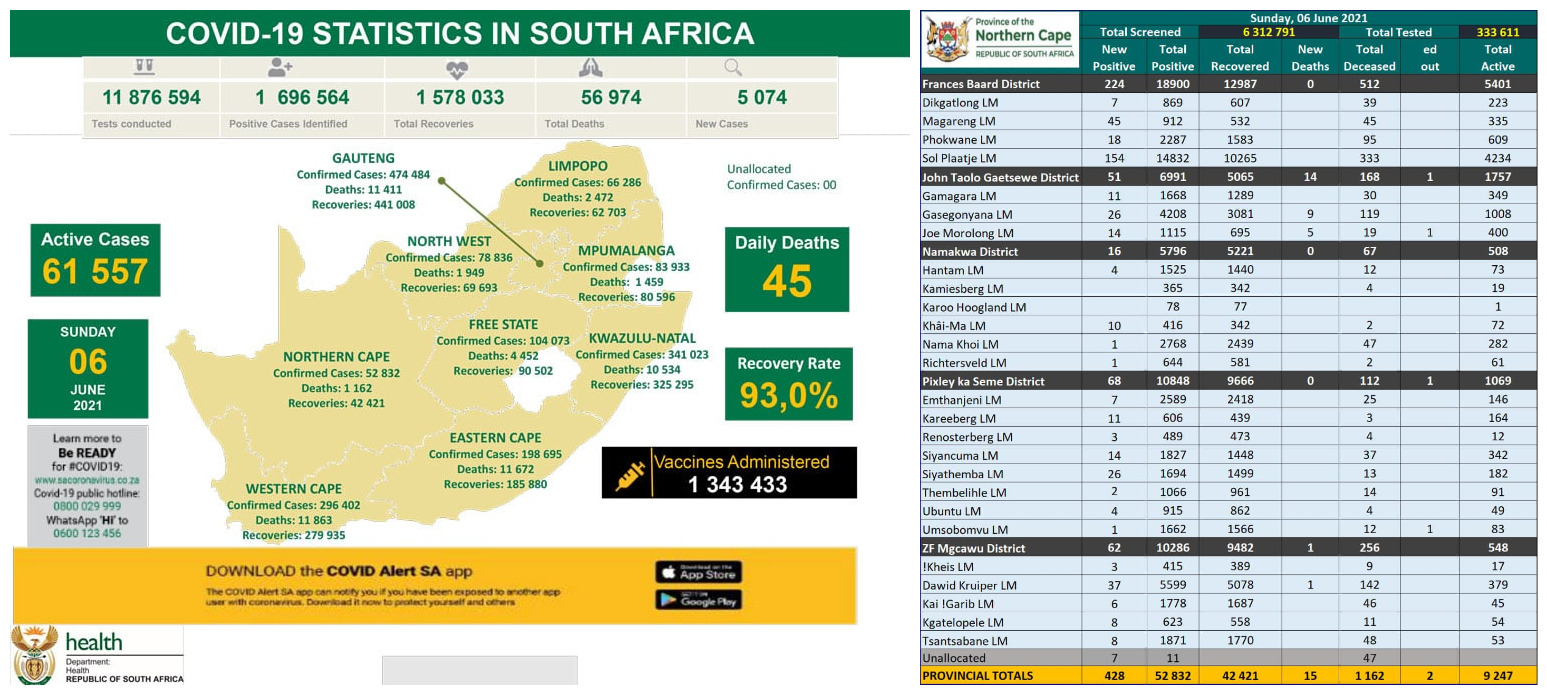 NORTHERN CAPE COVID-19 STATISTICS AS AT 06 JUNE 2021