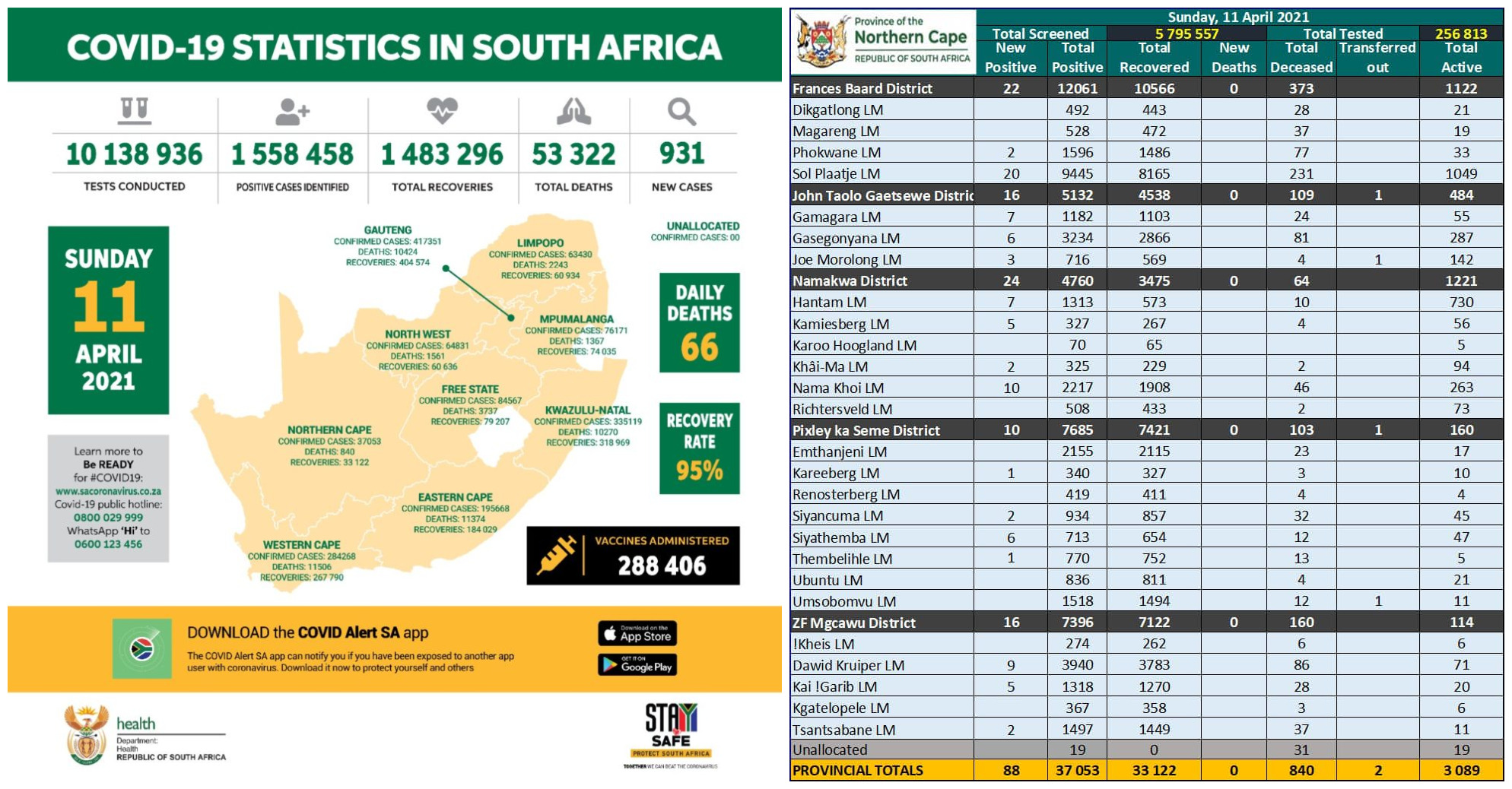 NORTHERN CAPE COVID-19 STATISTICS AS AT 11 APRIL 2021