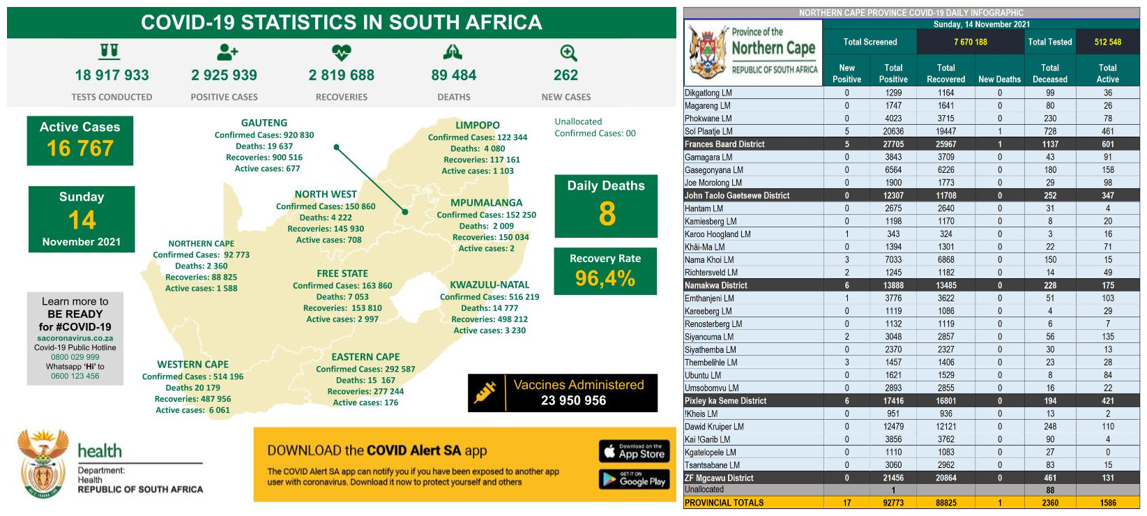 NORTHERN CAPE COVID-19 STATISTICS AS AT 14 NOVEMBER 2021