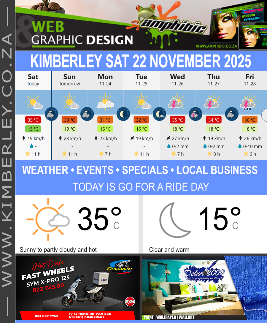 SATURDAYS – Kimberley parkrun: https://www.kimberley.co.za/?p=15540