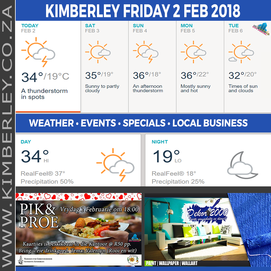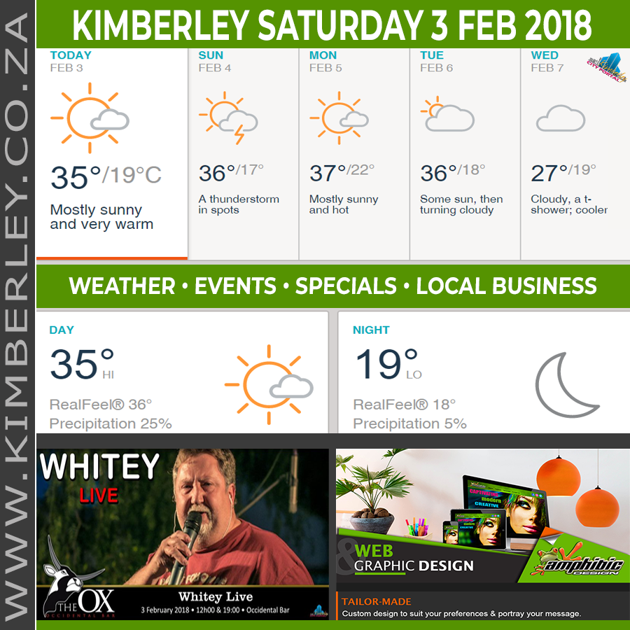 🗓#KimberleyToday, Saturday 03/02/2018