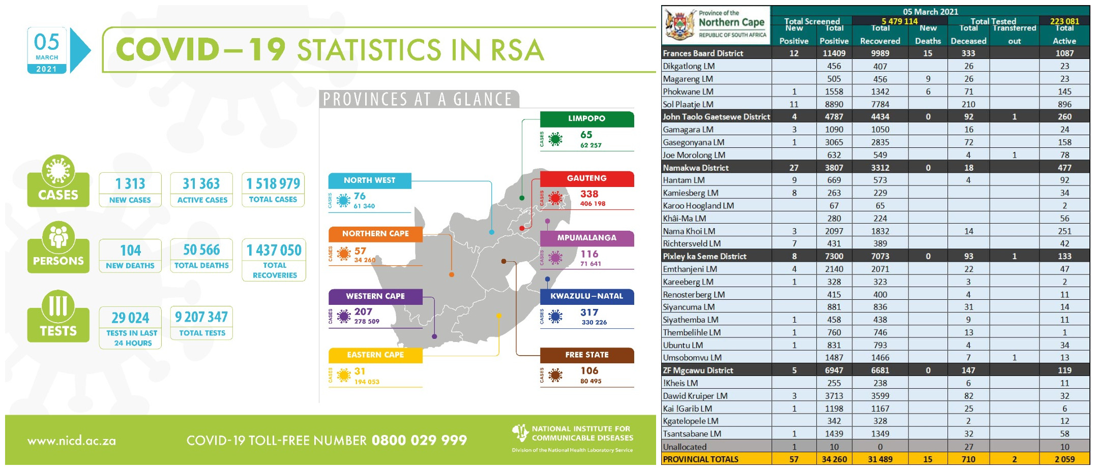NORTHERN CAPE COVID-19 STATISTICS AS At 05 MARCH 2021