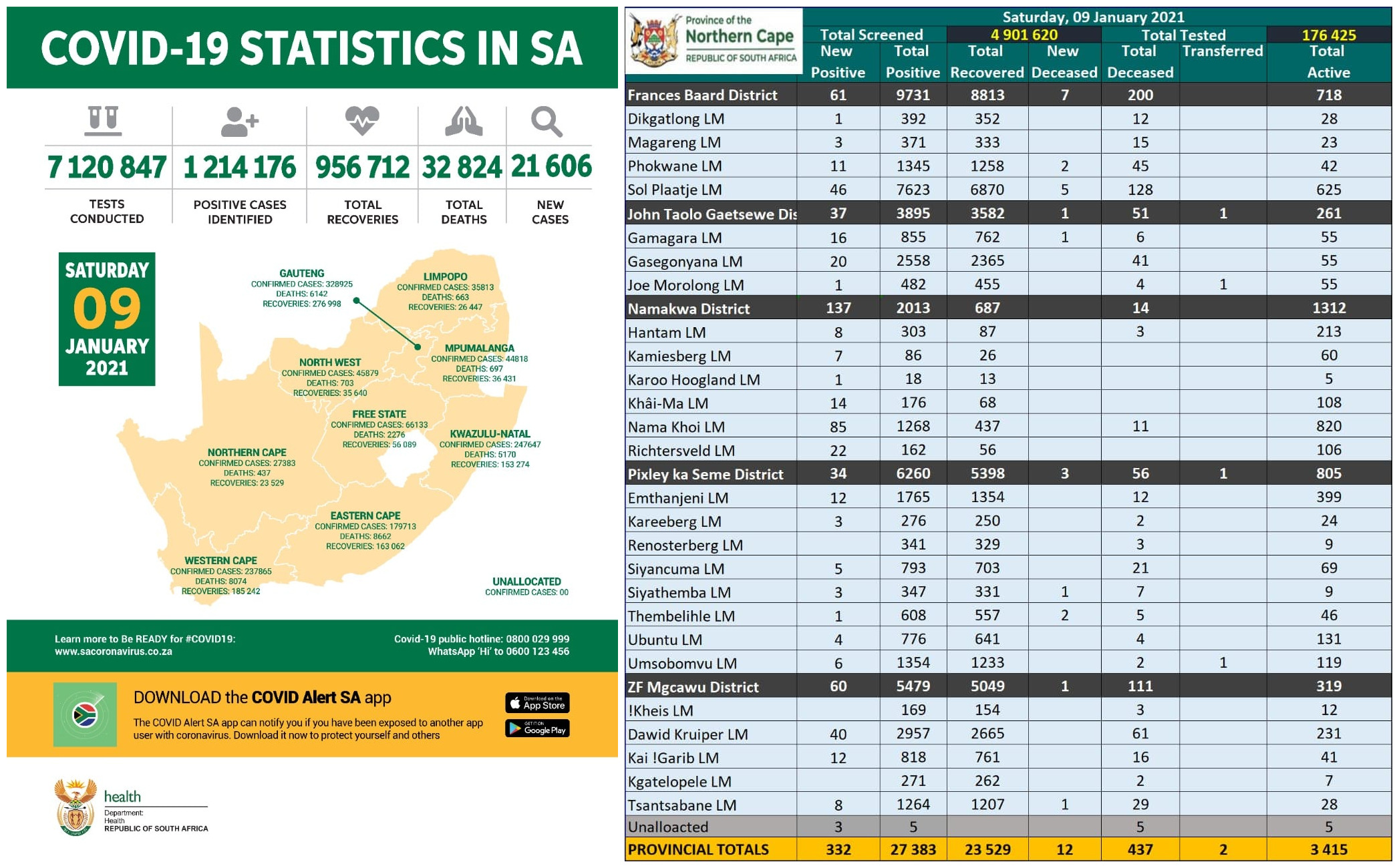 NORTHERN CAPE COVID-19 STATISTICS AS AT 09 JANUARY 2021