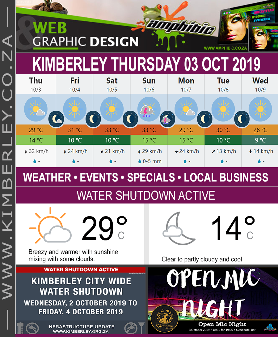 #Kimberley #CityPortal #KCP #KimberleyEvents #KimberleyBusiness #KimberleySpecials #KimberleyPromotions #KimberleyLocalBusiness #KimberleyWeather #KimberleyNightSky #KimberleyHistory #WhatDayIsToday