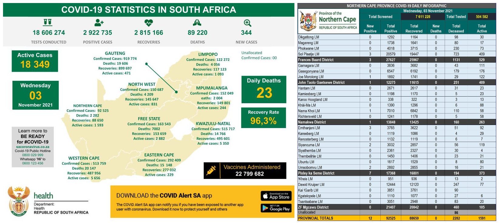 NORTHERN CAPE COVID-19 STATISTICS AS AT 03 NOVEMBER 2021
