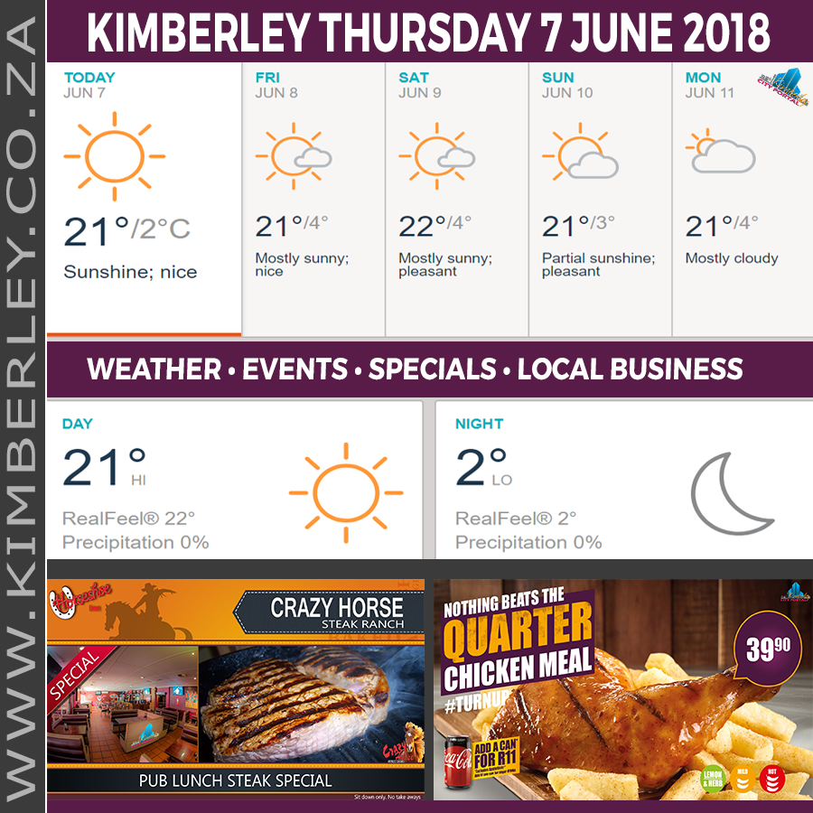 🗓#KimberleyToday, Thursday 07/06/2018