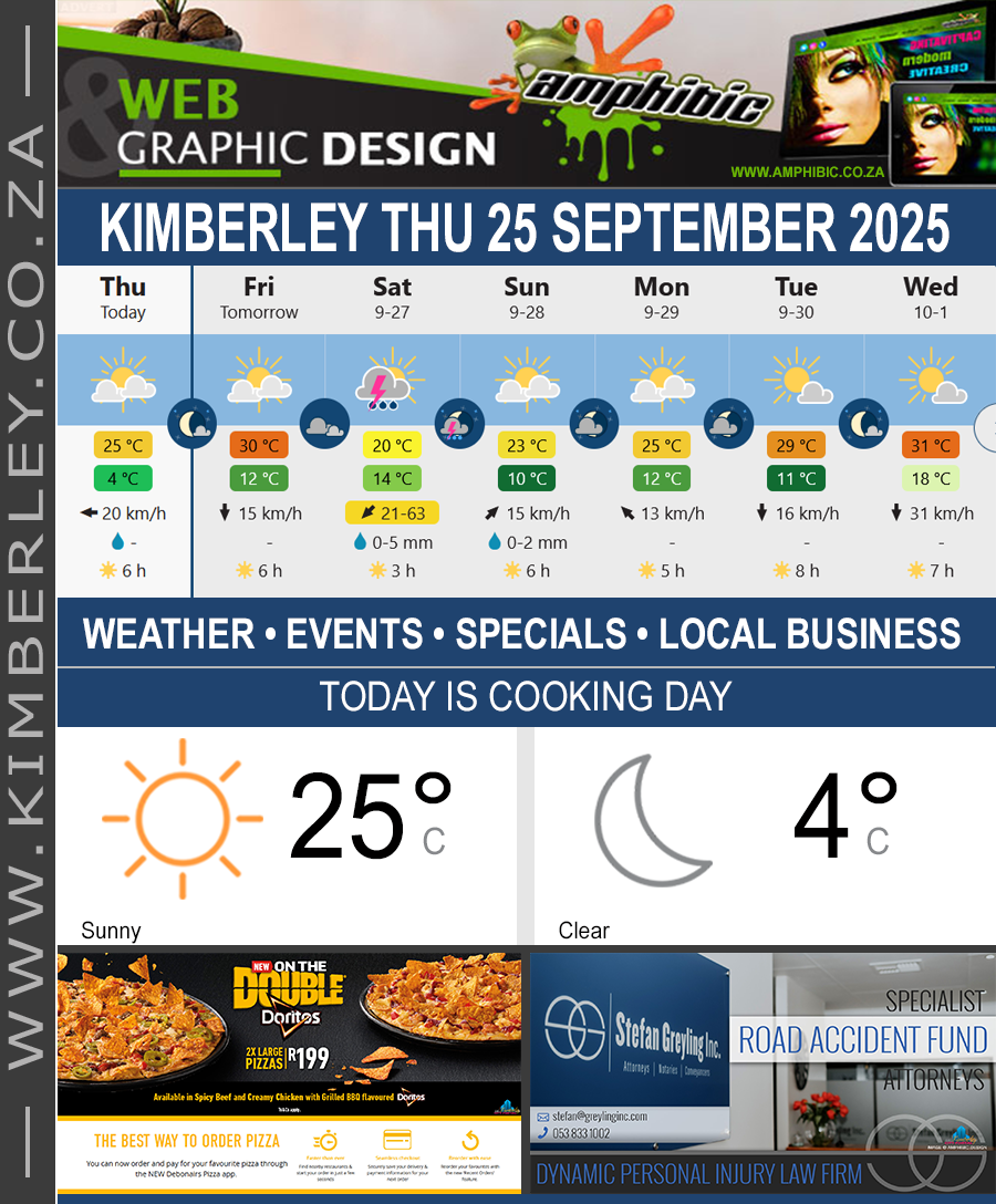 #Kimberley #CityPortal #KCP #KimberleyWeather #KimberleyNightSky #KimberleyHistory #LocalBusiness #WhatDayIsToday