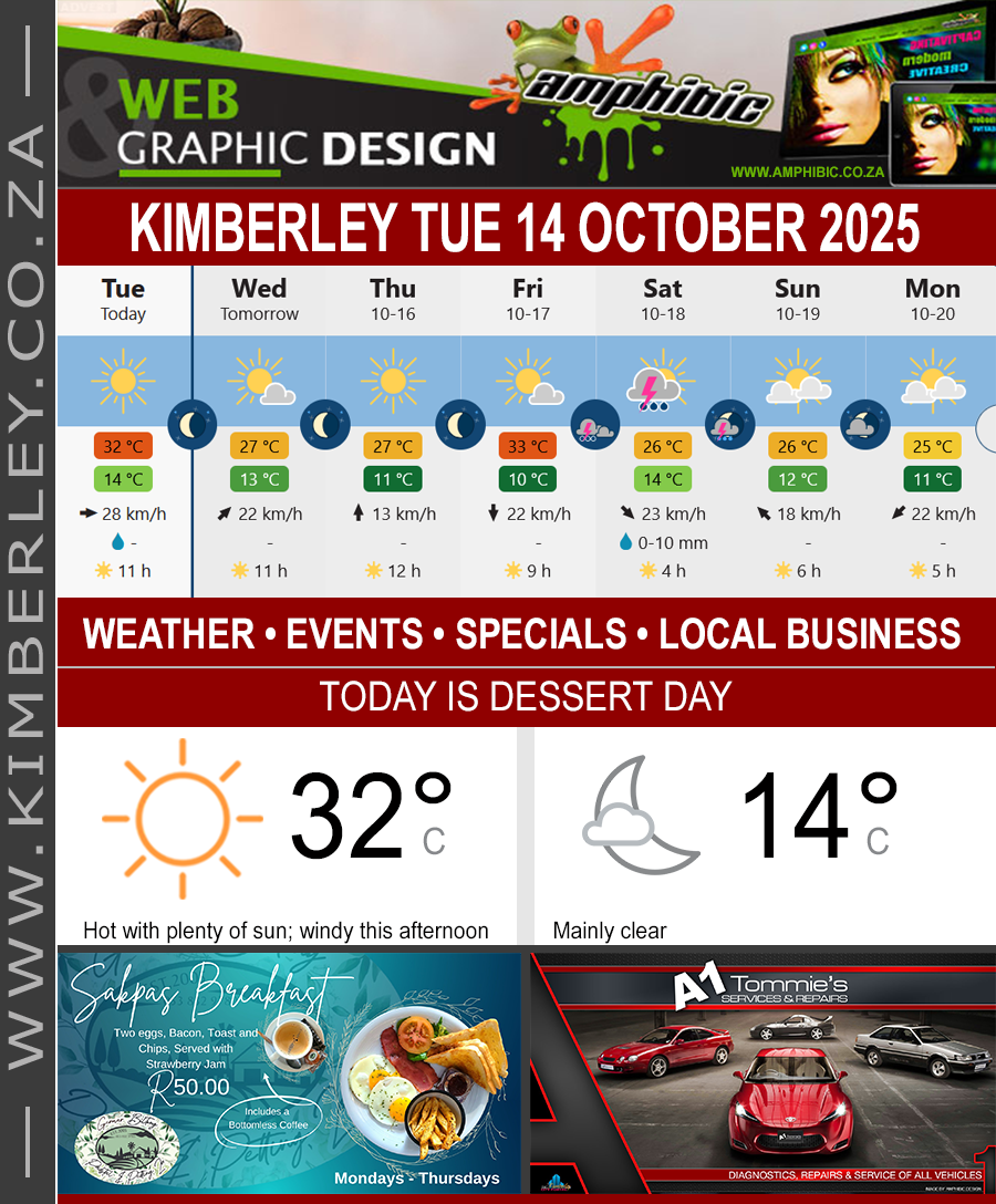 Today in Kimberley South Africa - Weather News Events 2025/10/14