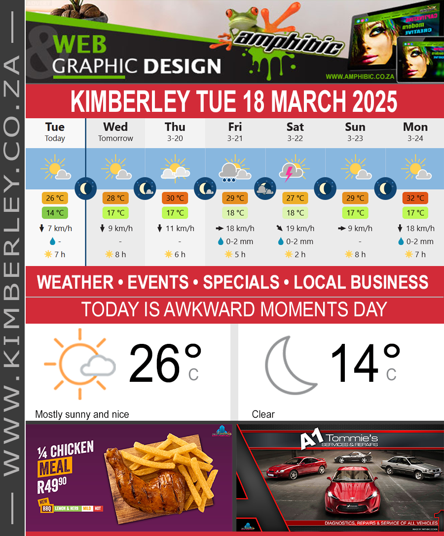 #Kimberley #CityPortal #KCP #KimberleyWeather #KimberleyNightSky #KimberleyHistory #LocalBusiness #WhatDayIsToday