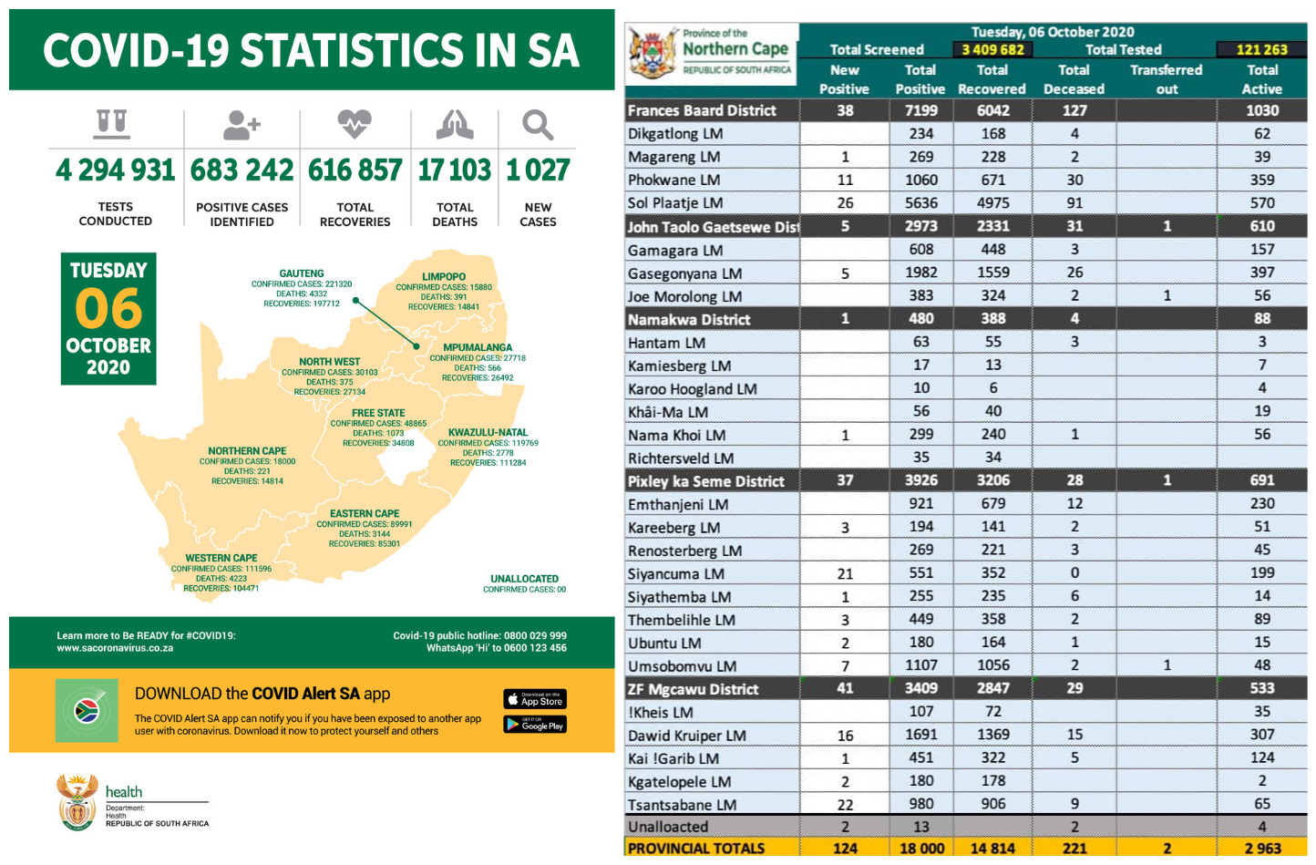 Northern Cape Stats: https://web.facebook.com/NCDOH2020/