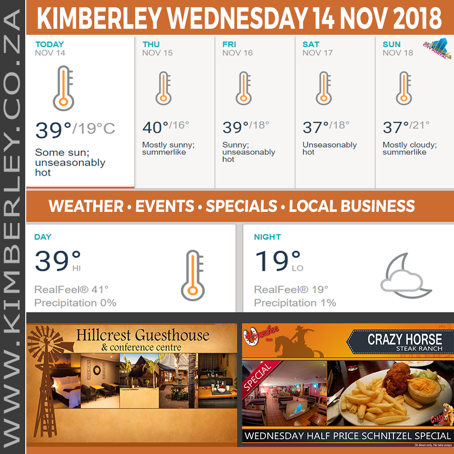 🗓#KimberleyToday, Wednesday 14/11/2018