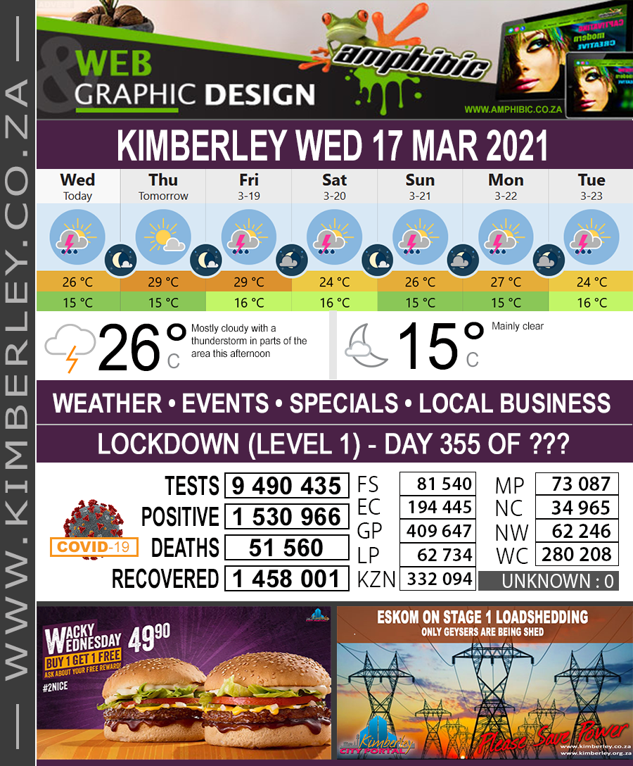 🗓#KimberleyToday, Wednesday 17/03/2021