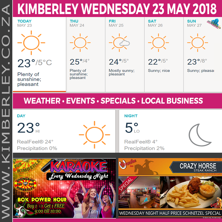 🗓#KimberleyToday, Wednesday 23/05/2018