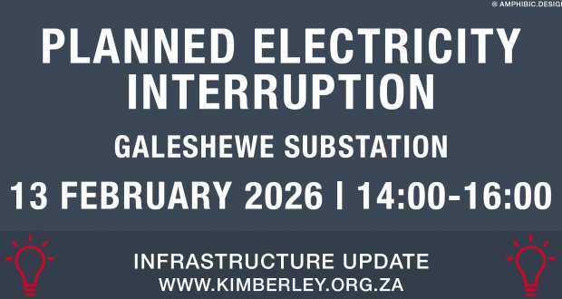 The supply of electricity will be temporarily interrupted tomorrow – 13 February 2026 – at Galeshewe Substation due to planned maintenance on the electrical apparatus.