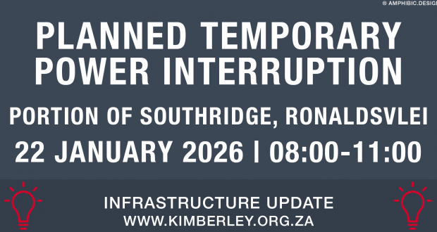 ALERT: PLANNED TEMPORARY POWER SUPPLY INTERRUPTION ON THURSDAY 22 JANUARY – PORTION OF SOUTHRIDGE, RONALDSVLEI
