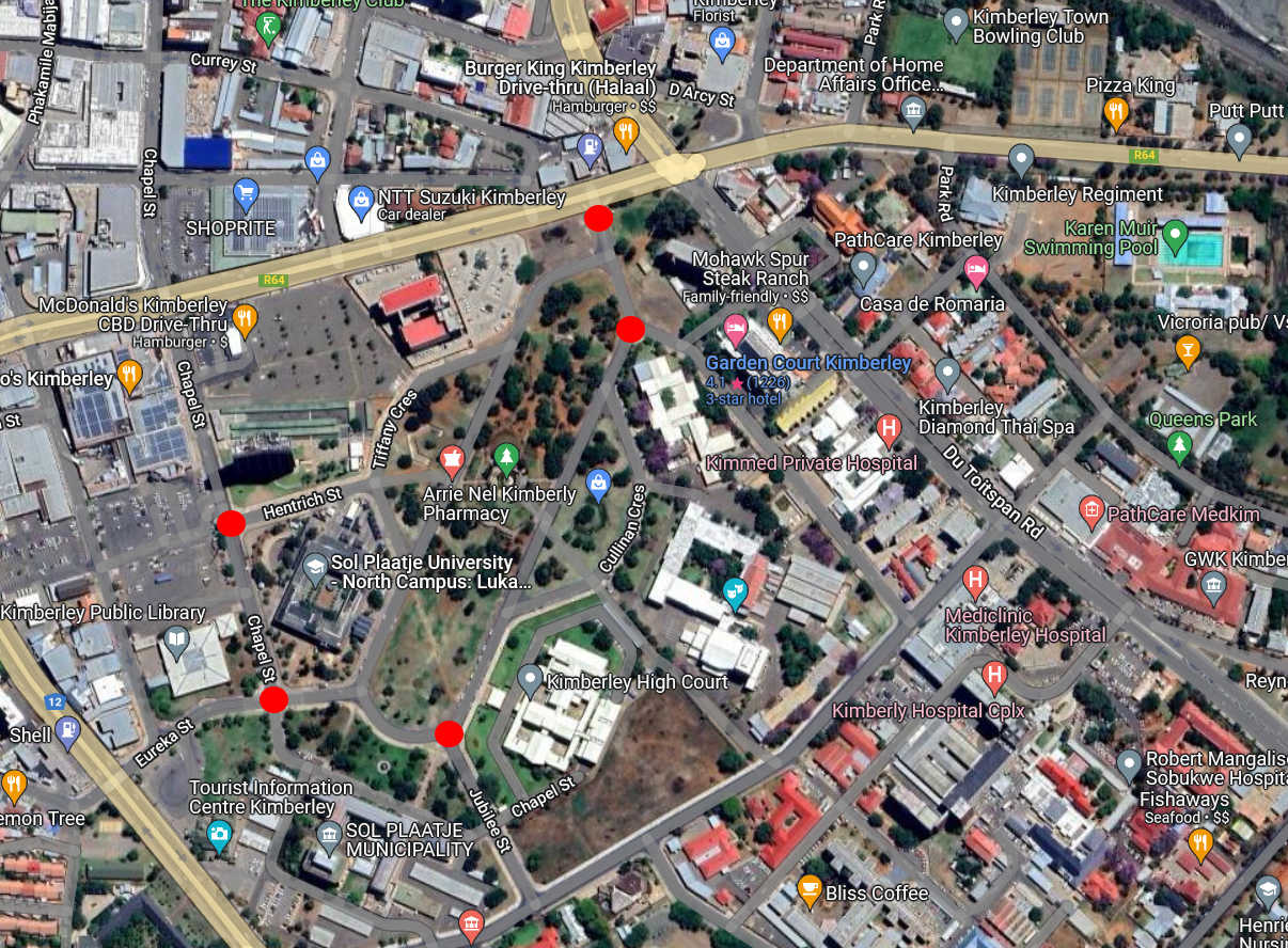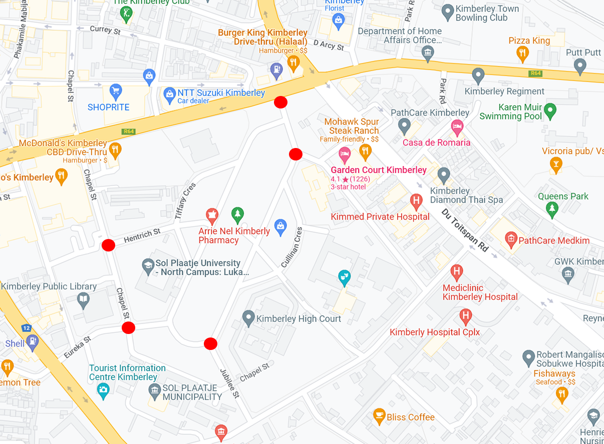 Roads around Oppenheimer Gardens, Sol Plaatje Drive & Jan Smuts Boulevard